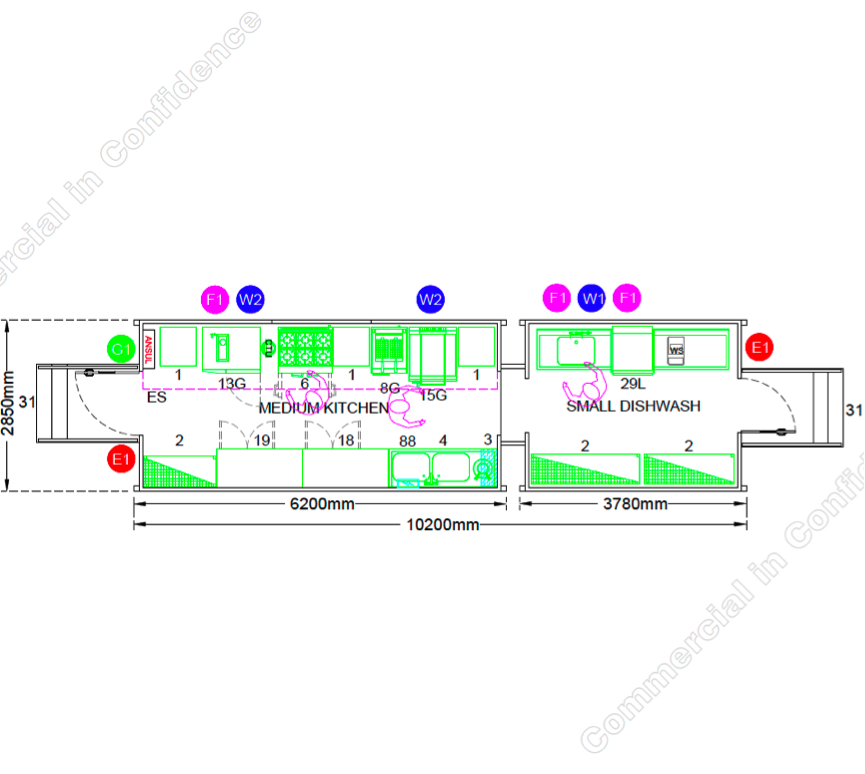 Enhance your commercial kitchen closure with our Custom Mobile Kitchen and Warewashing Unit. Perfect for small schools, hotels, or staff canteens.